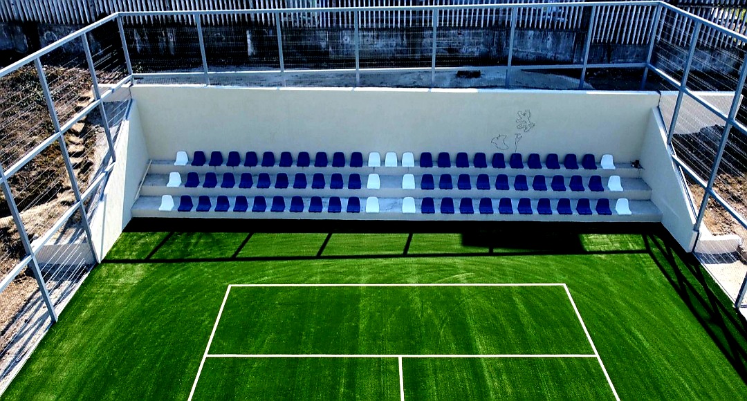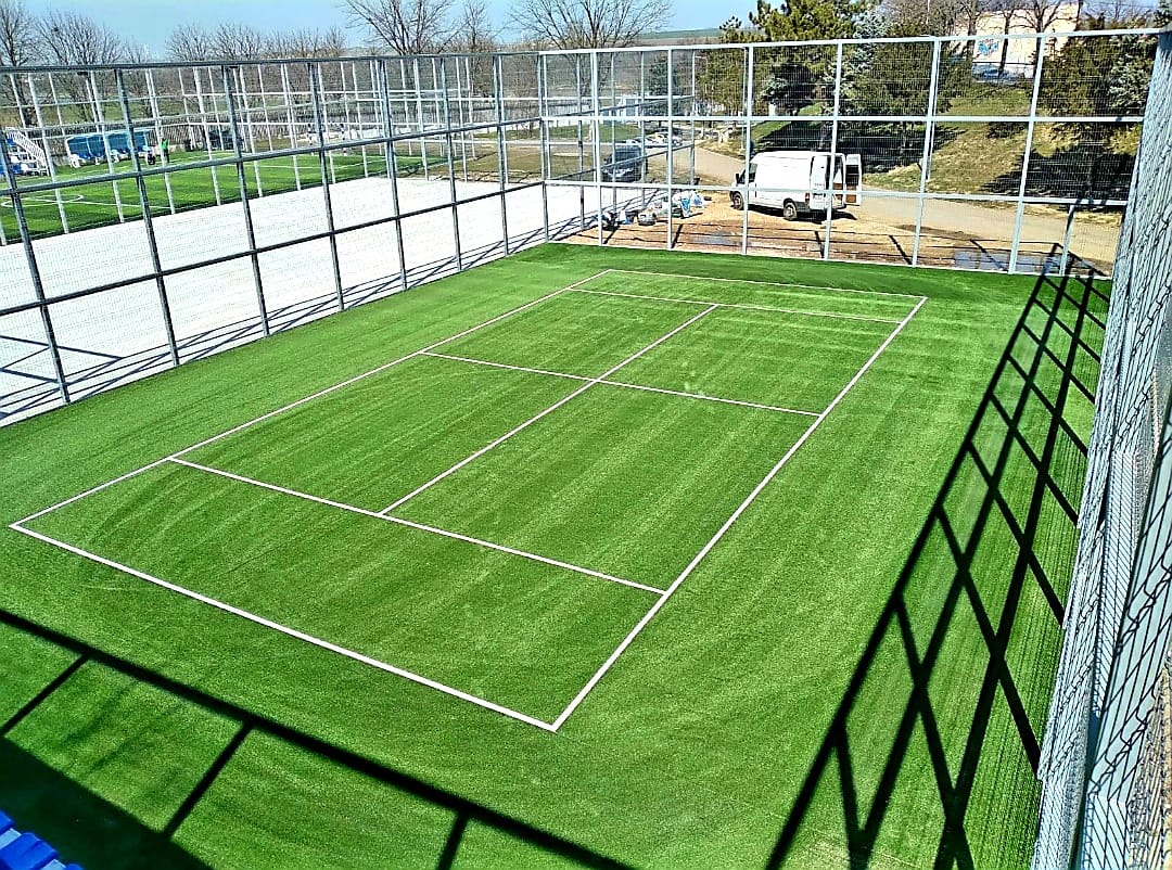 Amenajare teren de tenis cu gazon artificial cu fir fibrilat de 20 mm în localitatea Medgidia, judeţul Constanța.