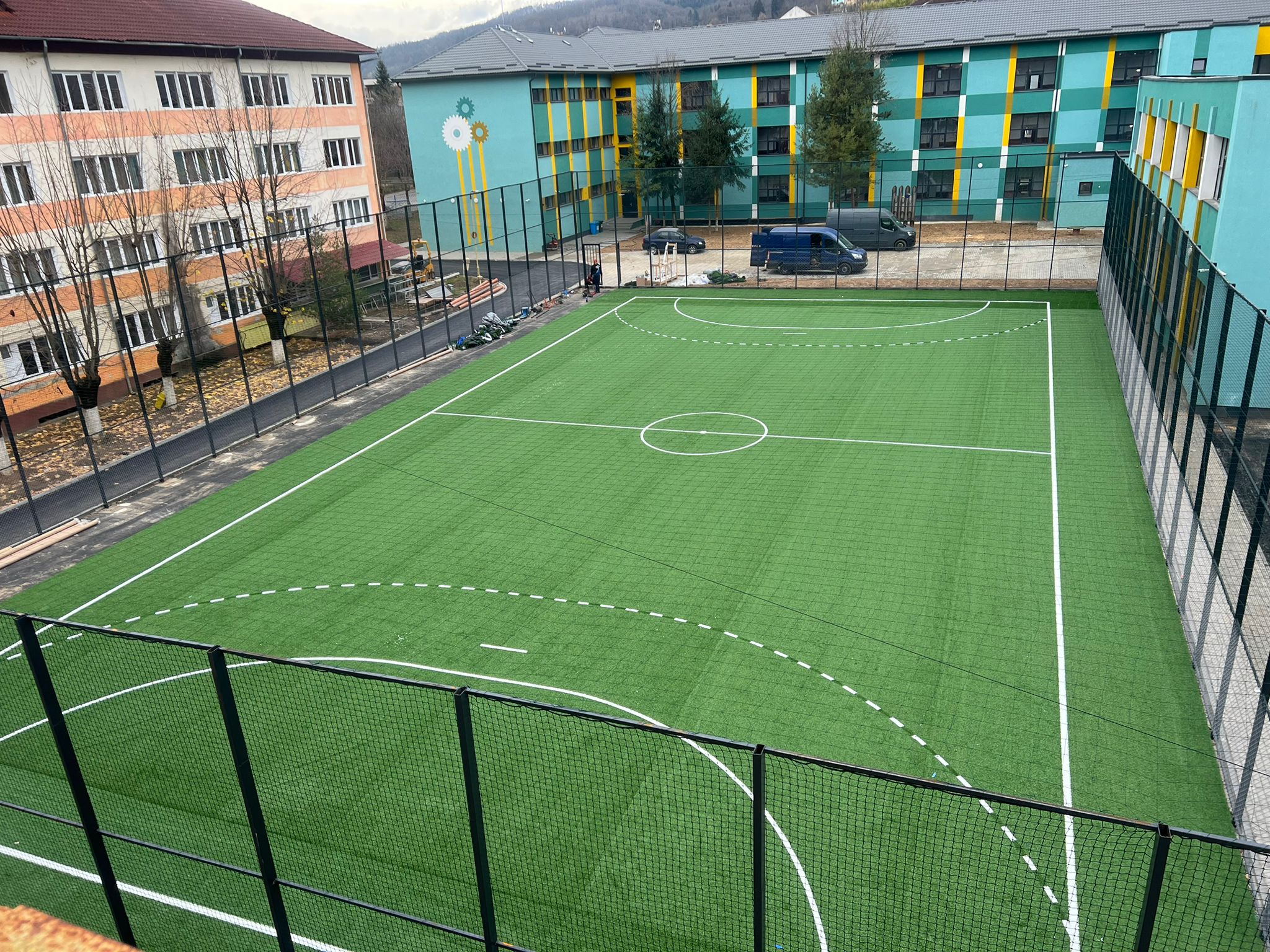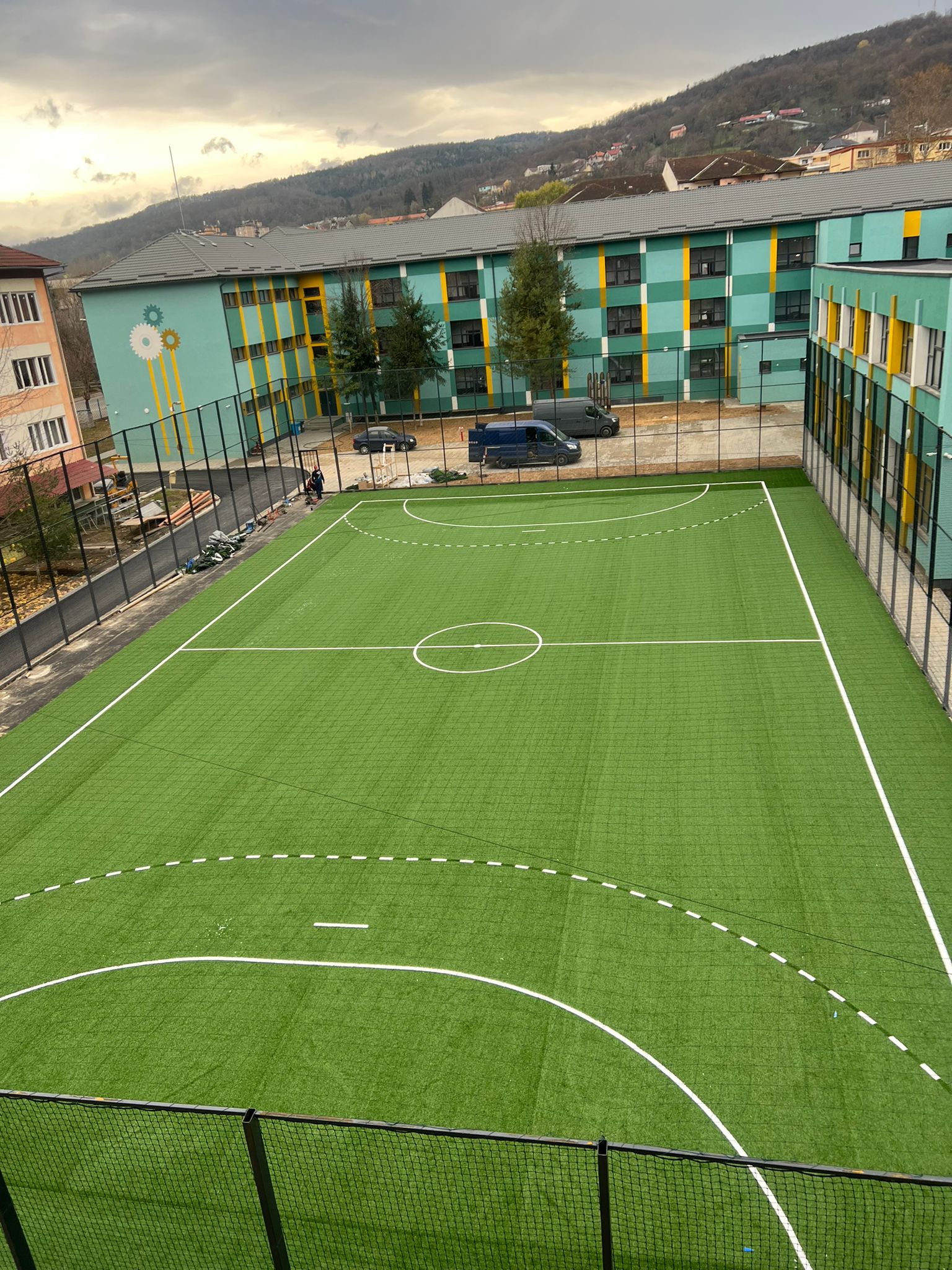 Amenajare teren de sport cu gazon artificial multisport premium, înălțime fir iarbă 20 mm, polietilenă în localitatea Caraș Severin, judeţul Reșița.