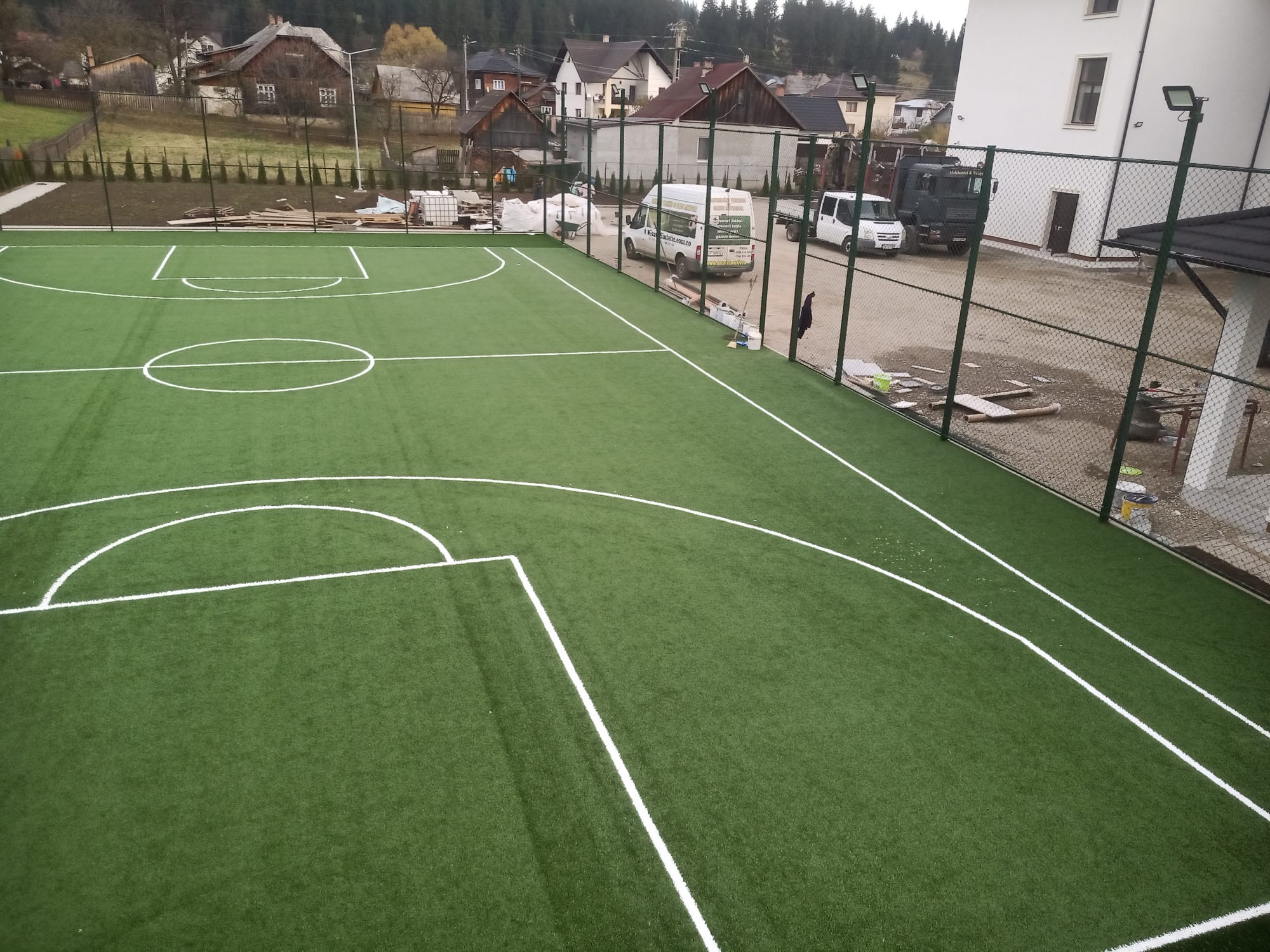 Amenajăm terenuri sportive cu gazon artificial cu densitatea mai mare a firelor de iarbă/mp. Pentru amenajarea terenului: